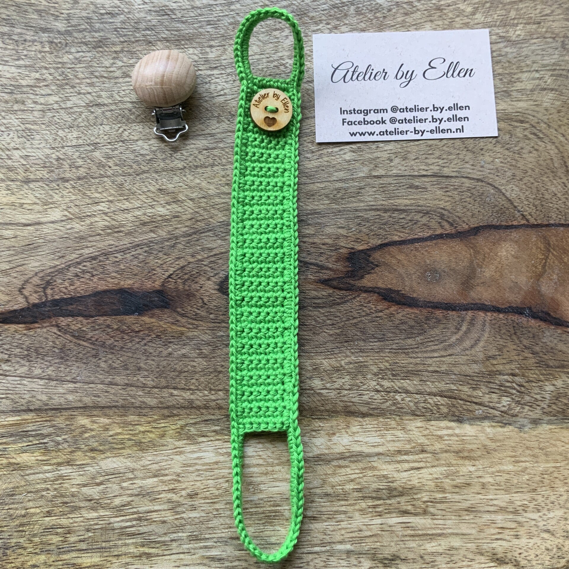 Het gehaakte speenkoord is wasbaar (mag op 30 graden in de wasmachine) en mag ook meegegeven worden naar de meeste kinderdagverblijven. Dit laatste is vaak niet het geval met speenkoorden voorzien van houten kralen.