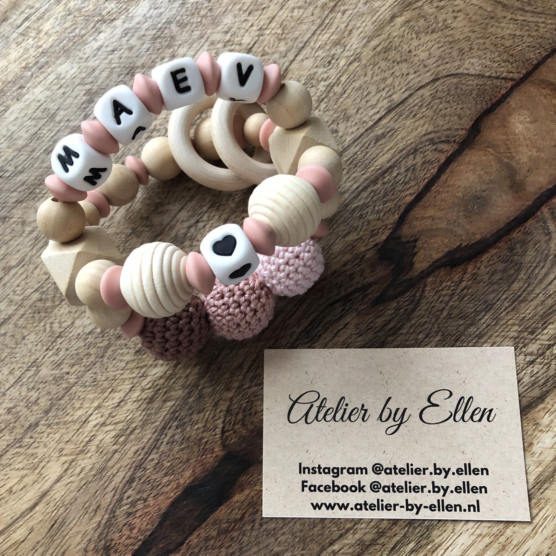 Indien je ervoor kiest om de 3D bijtring te laten personaliseren, zal er gebruik worden gemaakt van de vierkante silicone letterkralen.